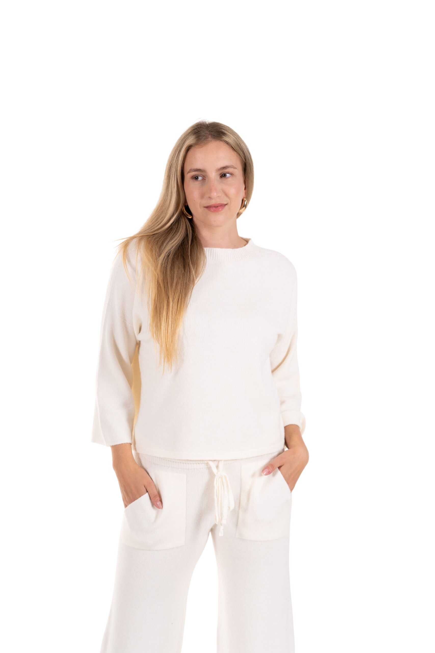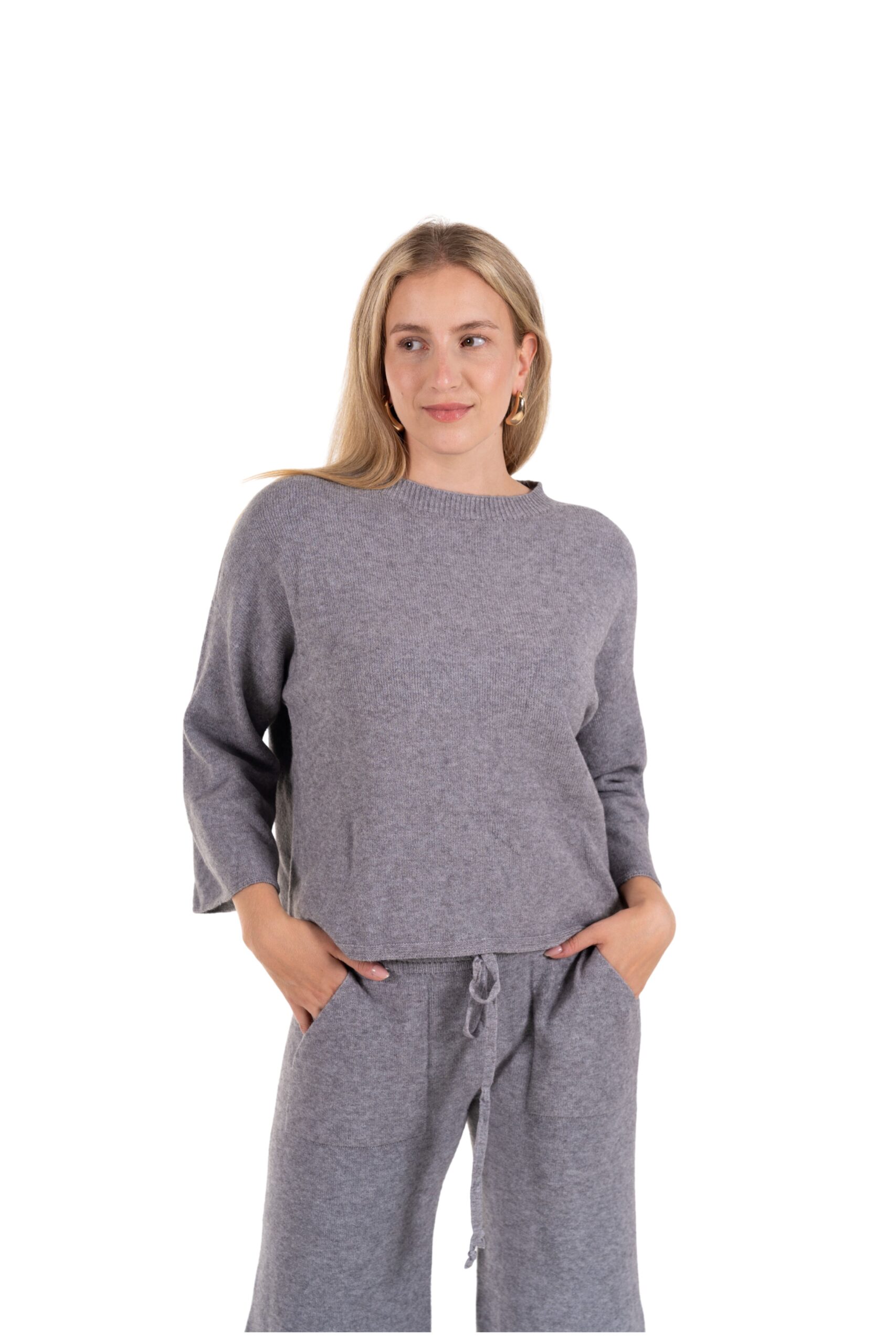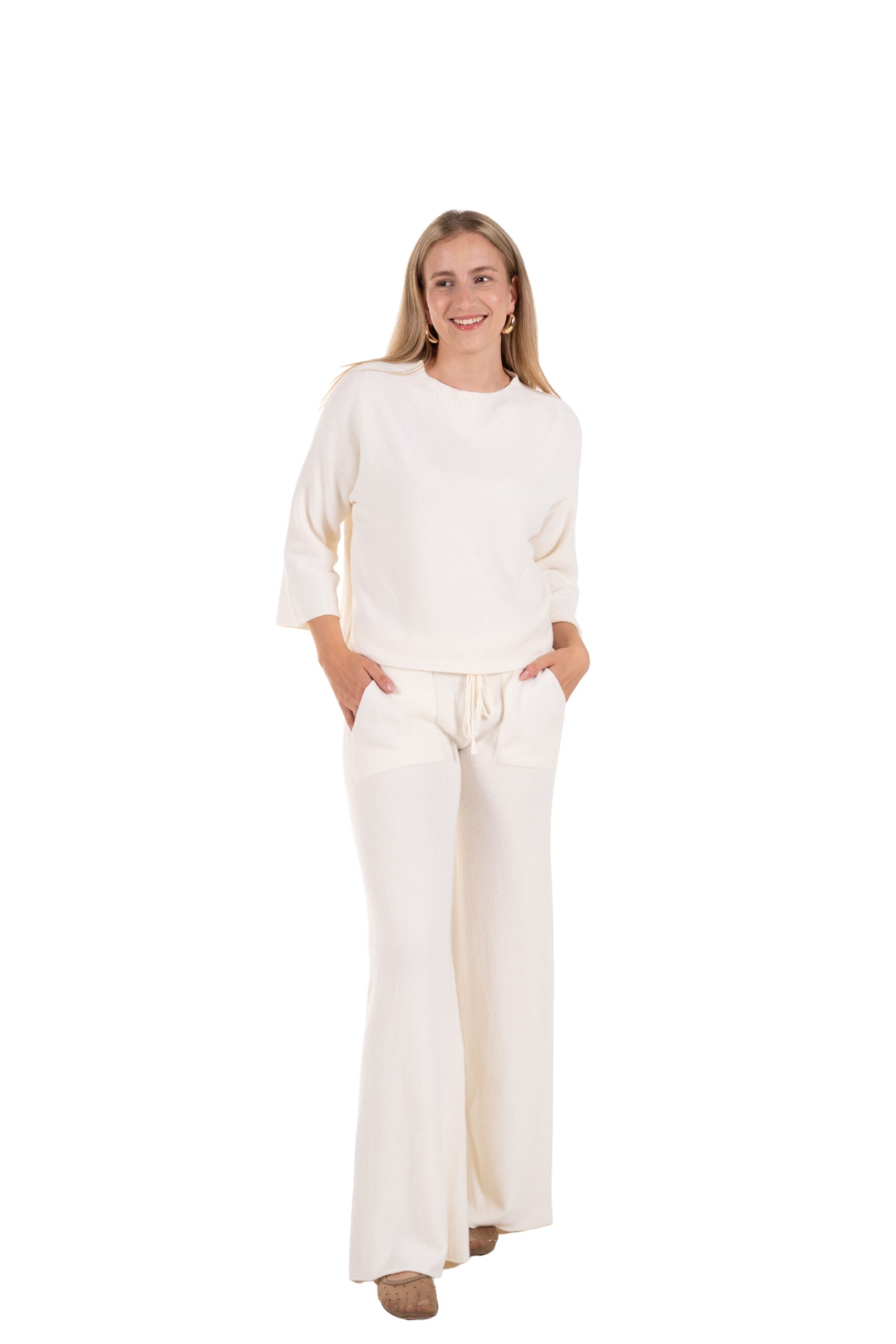 Objevte dokonalou kombinaci pohodlí a stylu s našim setem Soft Elegance. Tento dvoudílný outfit z jemného, příjemného materiálu vám poskytne pocit naprosté volnosti, ať už doma, na cestách nebo při volnočasových aktivitách. Lehká halenka s uvolněným střihem a široké kalhoty se stahovací šňůrkou krásně ladí dohromady a vytváří minimalistický, moderní vzhled. Na kalhotáh je i klokaní kapsa.