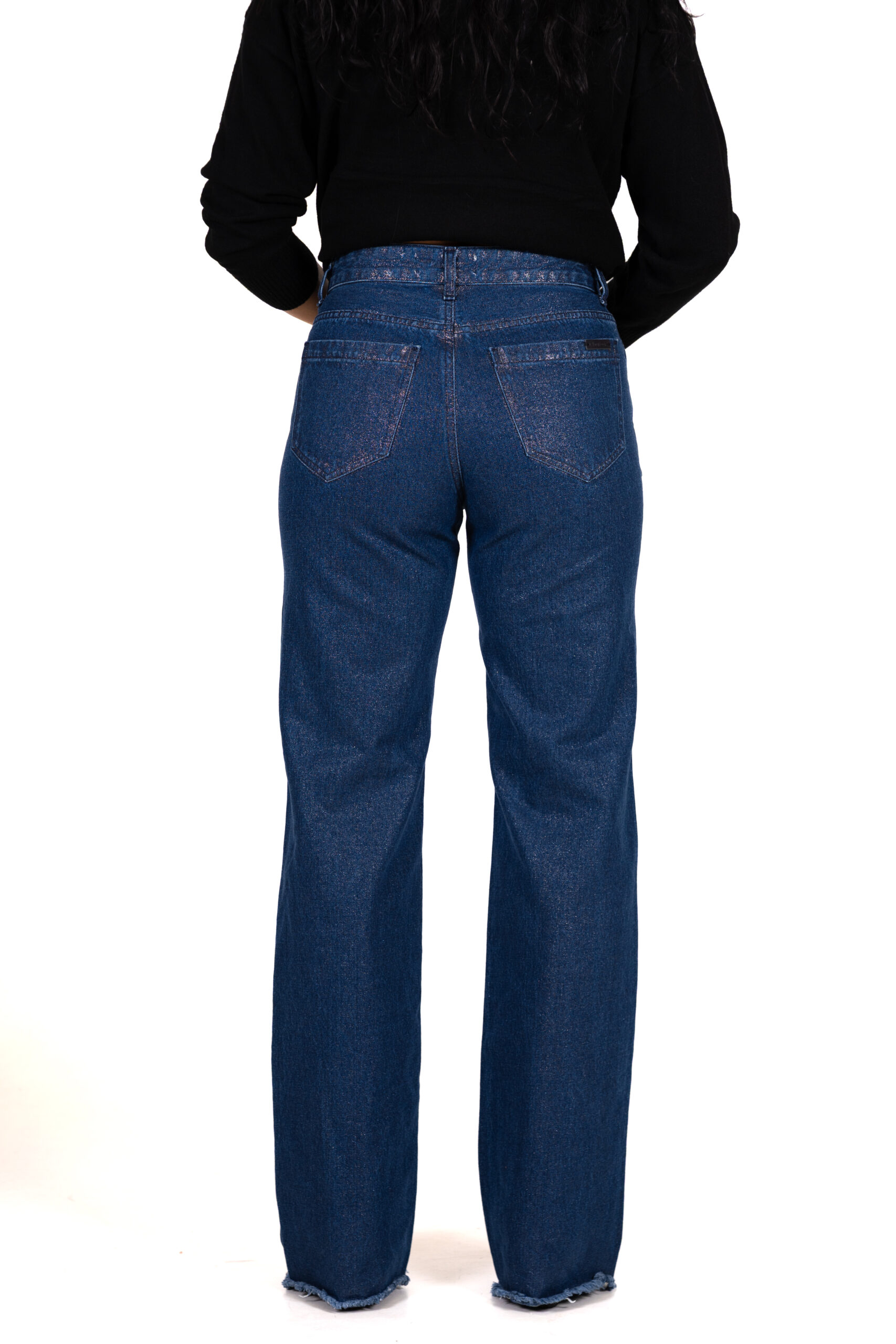 Moderní dámské džíny v klasickém střihu s vysokým pasem a rovnými nohavicemi. Materiál s jemným leskem dodává džínům elegantní vzhled, zatímco roztřepené zakončení nohavic přidává ležérní styl. Skvěle se kombinují s tričkem, halenkou i sakem pro každodenní i volnější outfity.