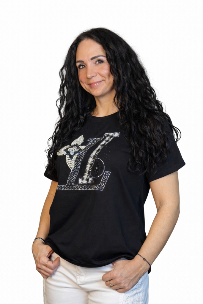 Elastické tričko se třpytivou výšivkou