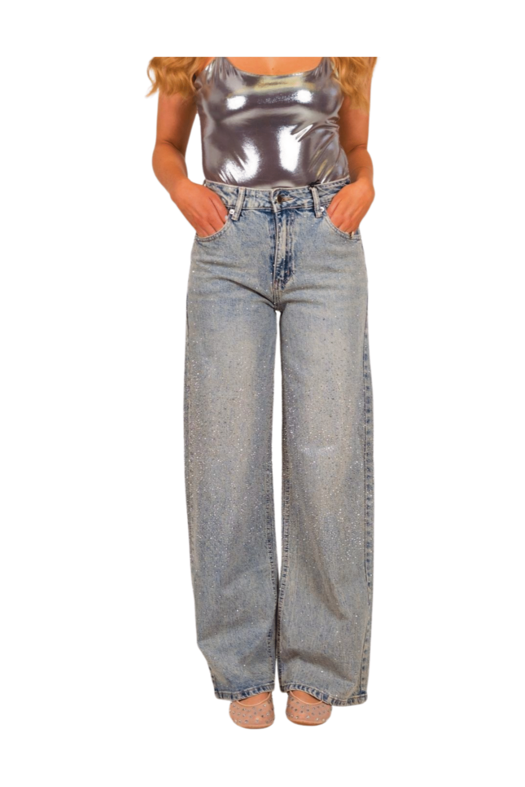 Elegantní rovné džíny s jemnými štrasovými kamínky, které dodávají outfitu luxusní nádech. Jsou lehce elastické, takže se pohodlně nosí a krásně přizpůsobí postavě. Moderní, rovnější střih a dostupnost ve dvou barevných variantách.