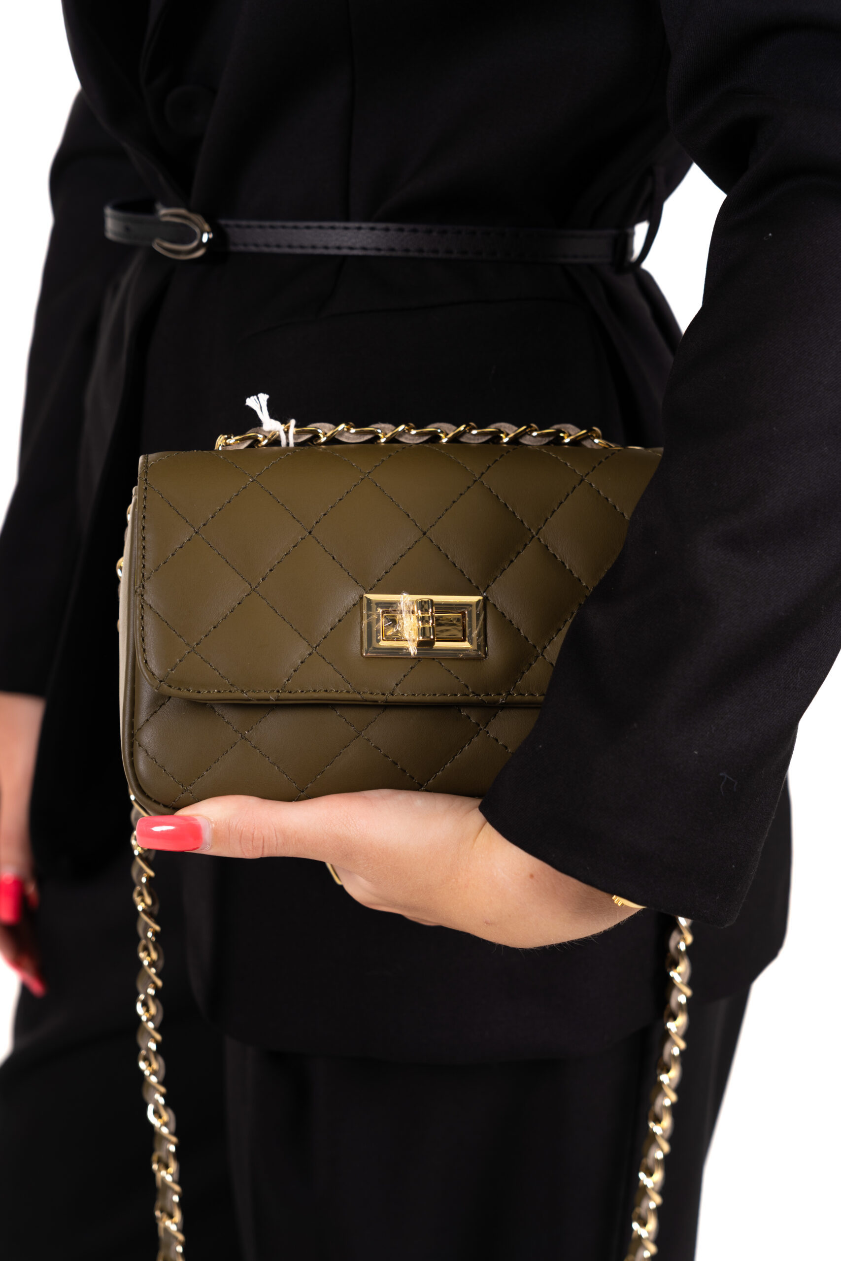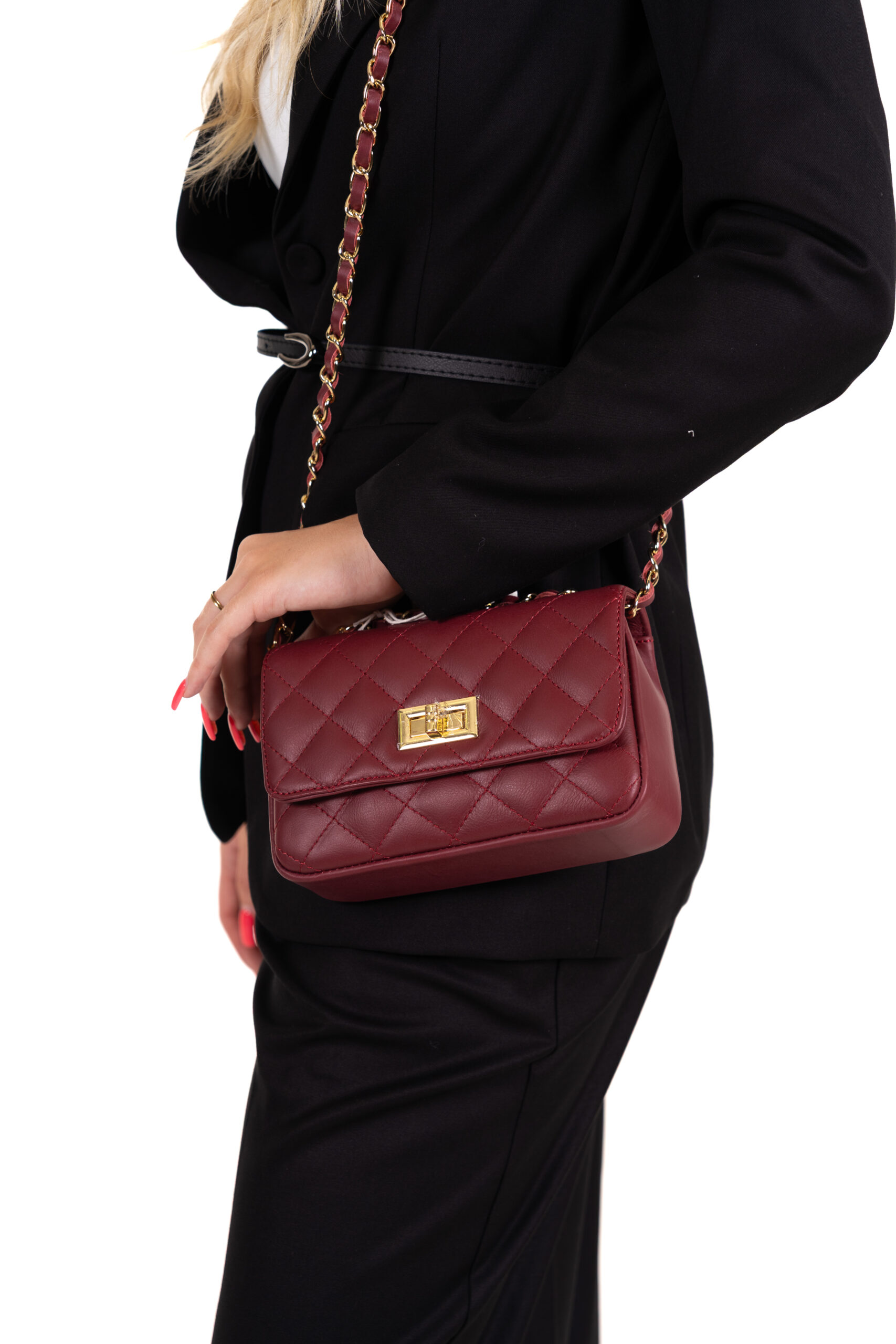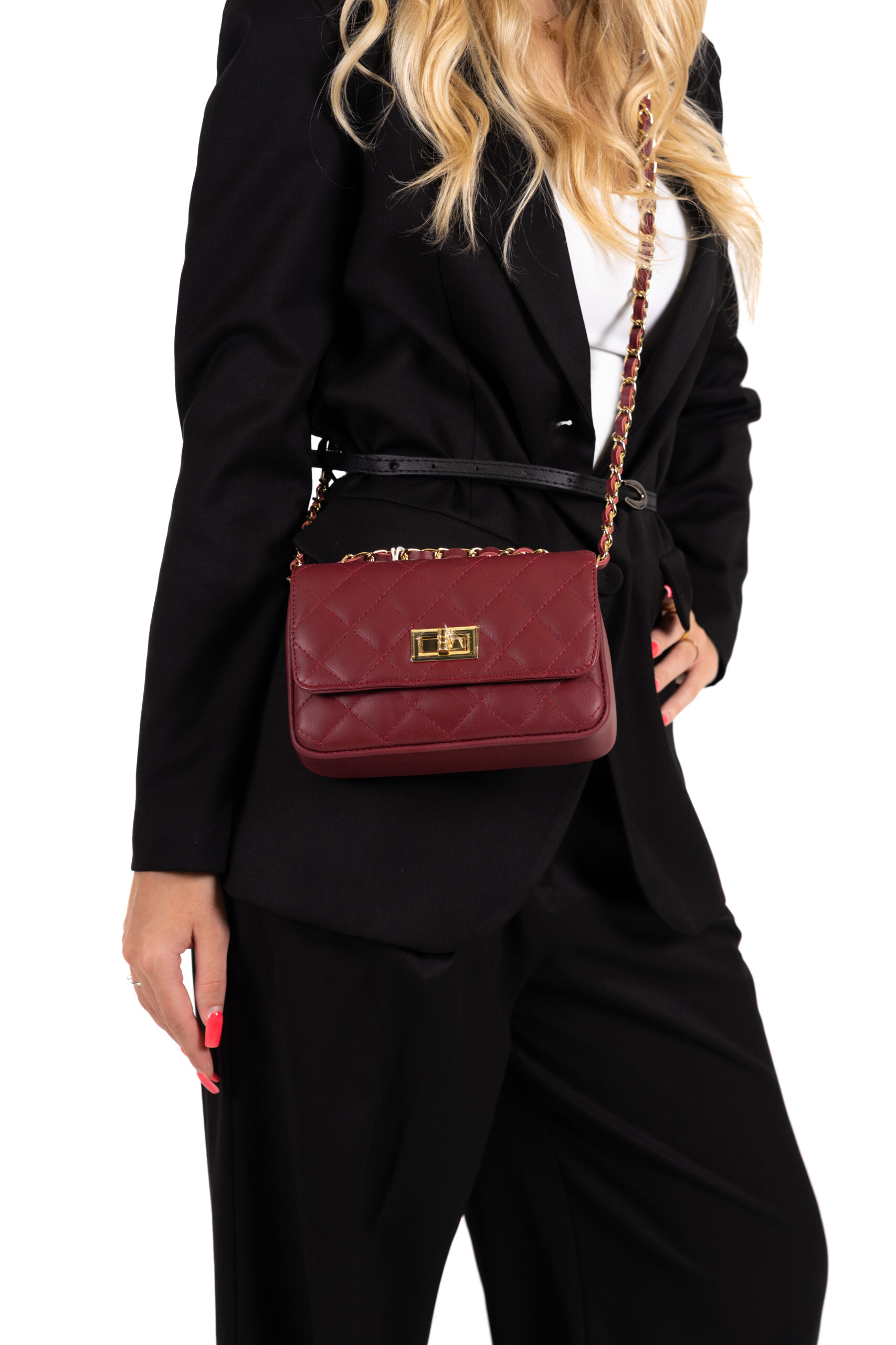 Elegantní prošívaná kabelka z pravé kůže v kombinaci se zlatými detaily je nadčasovým kouskem, který doladí každý outfit. Stylový řetízkový popruh umožňuje nošení přes rameno i do ruky a kovové zapínání podtrhuje luxusní vzhled. Skvělá volba na každodenní nošení i speciální příležitost.