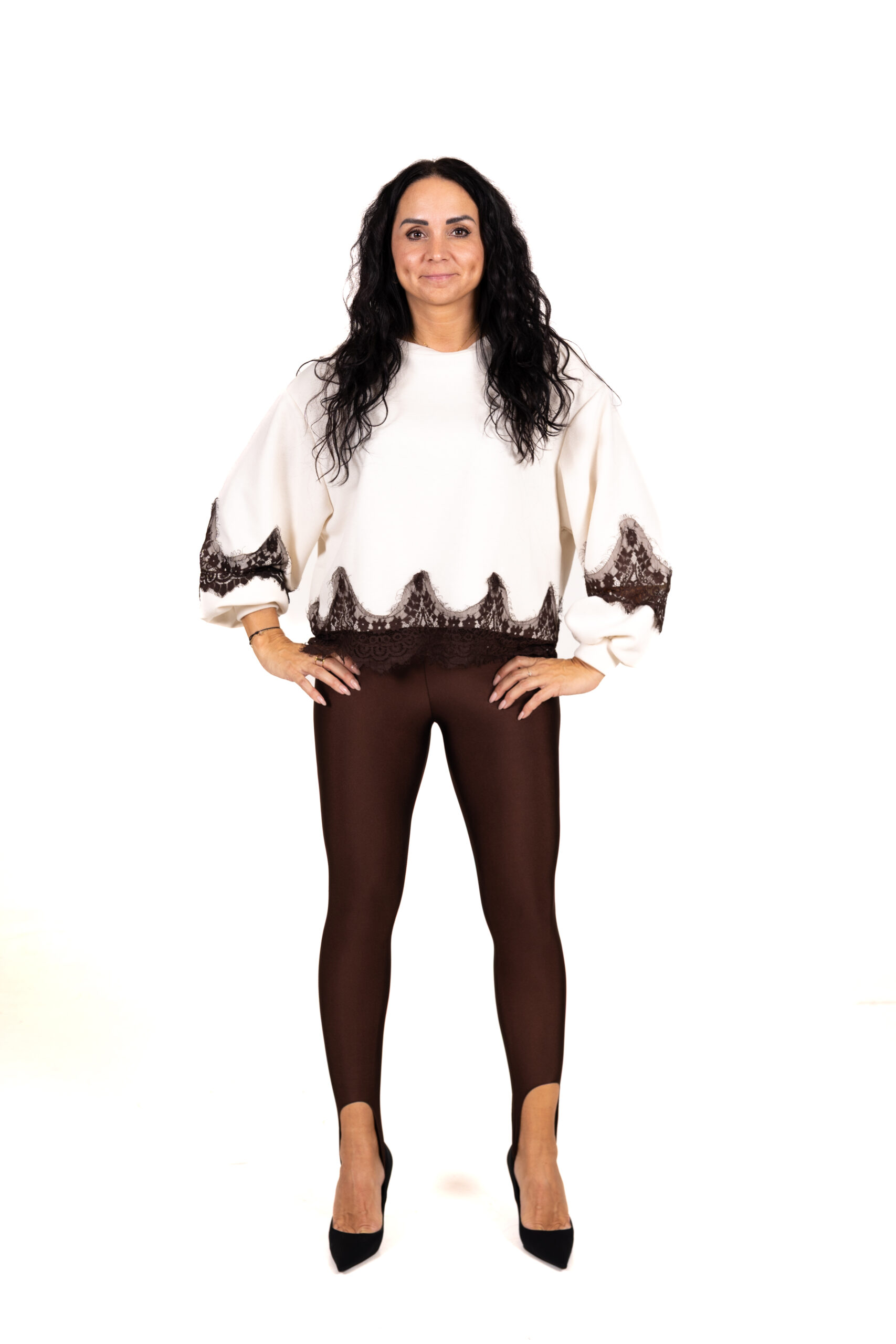 Stylový tenká halenka s volnějším střihem, ozdobená jemnou krajkou na spodním lemu a rukávech. Příjemný prodyšný materiál zajišťuje komfort při nošení po celý den. Ideální kousek pro ležérní i elegantnější outfit.