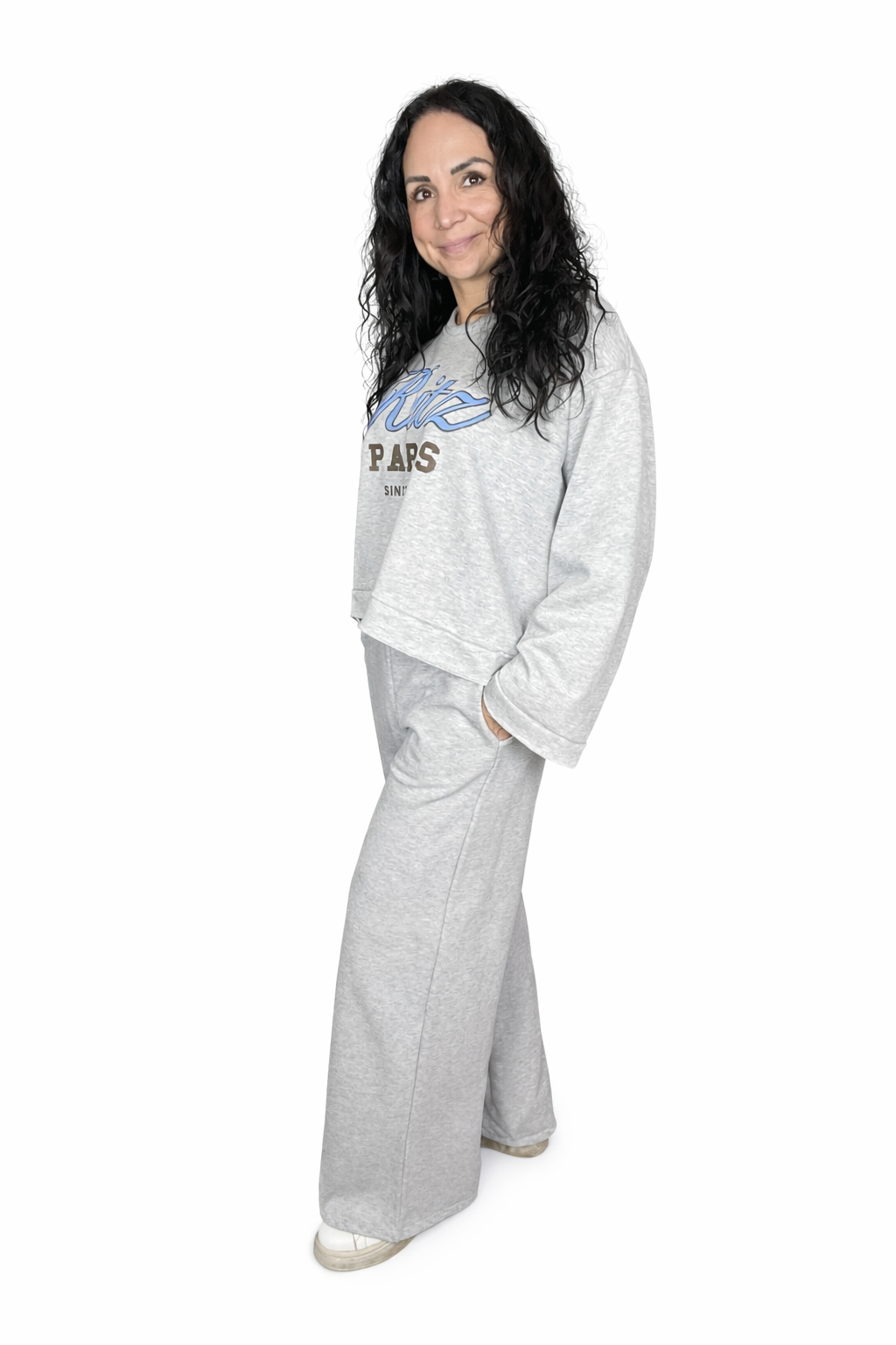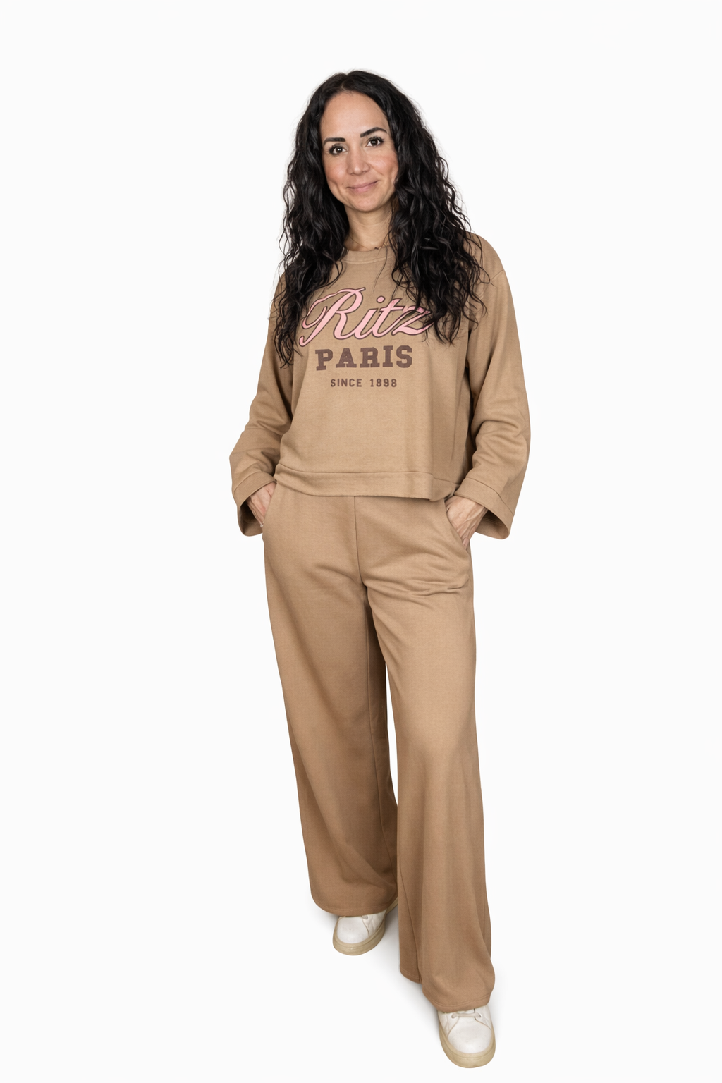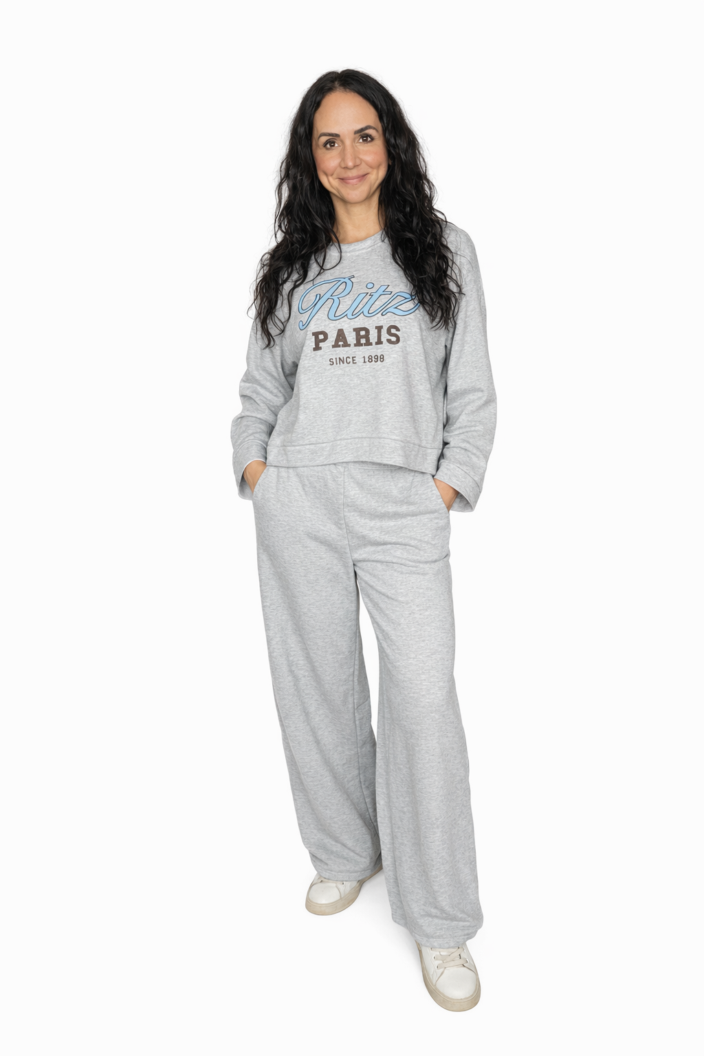 Stylová tepláková souprava v moderním střihu spojuje maximální pohodlí s trendy vzhledem. Mikina s nápisem „Ritz Paris“ dodává outfitu šmrnc a lehce sportovně-elegantní nádech. Kalhoty mají pohodlnou gumu v pase na zadní části, díky které se skvěle přizpůsobí postavě, a praktické boční kapsy pro každodenní využití. Měkký a příjemný materiál zajišťuje komfort pro celý den.